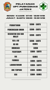 JADWAL PELAYANAN PUSKESMAS JATEN II
